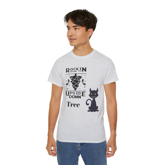 Cat Unisex Tee - Rockin Around the Upside Down Tree Design